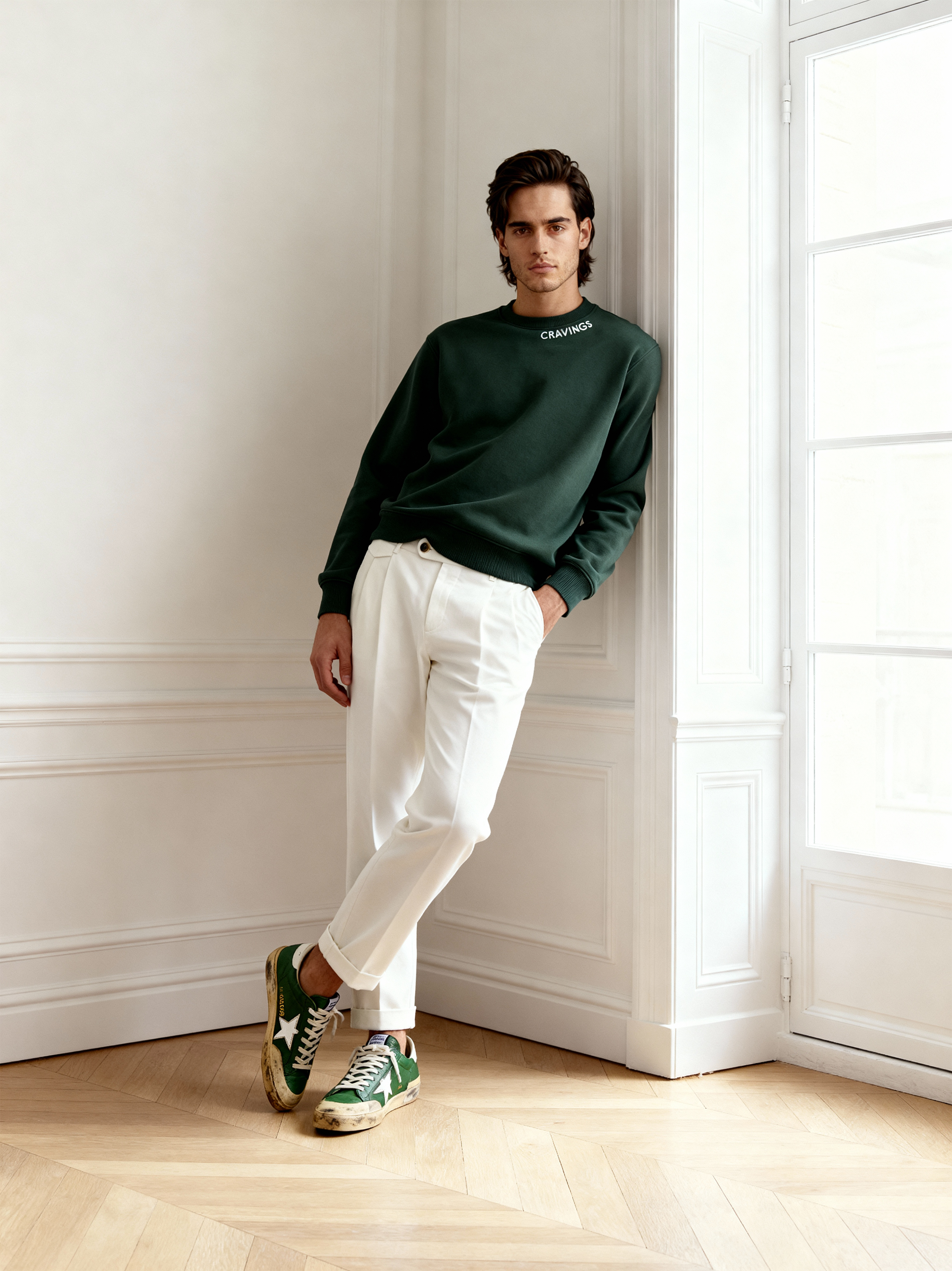 Soft crew sweatshirt crafted in premium cotton fleece featuring a bold script logo embroidery across the neckline, embodying a streetwise aesthetic with refined edge.