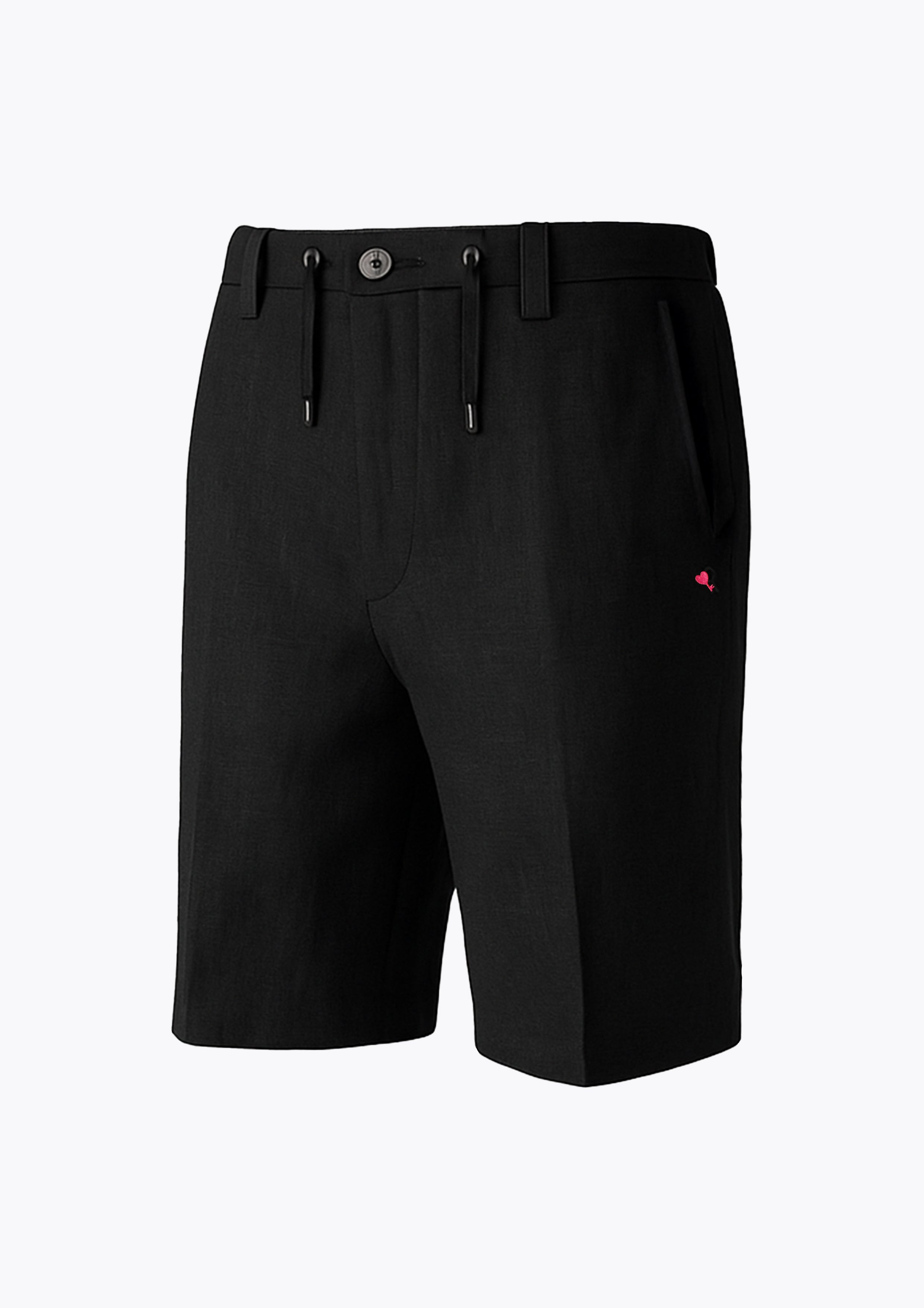 Relaxed sophistication meets refined detail in these Onyx Black Linen Shorts. Crafted from premium, organic linen with an elasticated waist and drawcords, the shorts sit with natural ease while offering impeccable comfort and structure. A branded embroidery detail adds a signature touch.