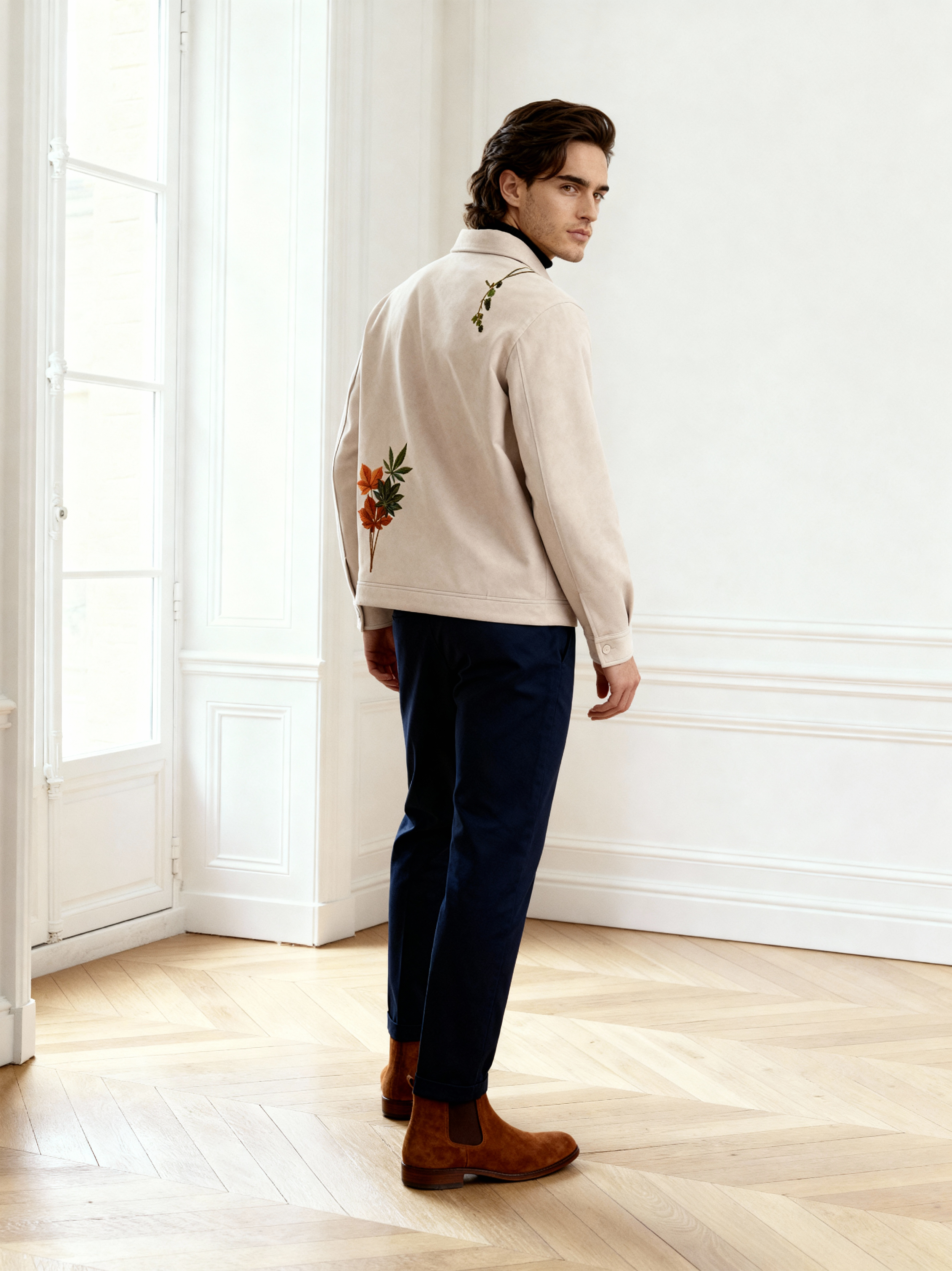 A reimagining of nature – layered and enigmatic. Handcrafted in luxurious wool, this jacket features an intricate tapestry of foliage and winding botanicals, embroidered with intention and precision. Each thread reflects the artistry of craftsmanship and nature's enigma, elevated through a lens of modern luxury. Where elegance meets intrigue and sophistication meets desire. A contemporary ode to nature’s complexity.