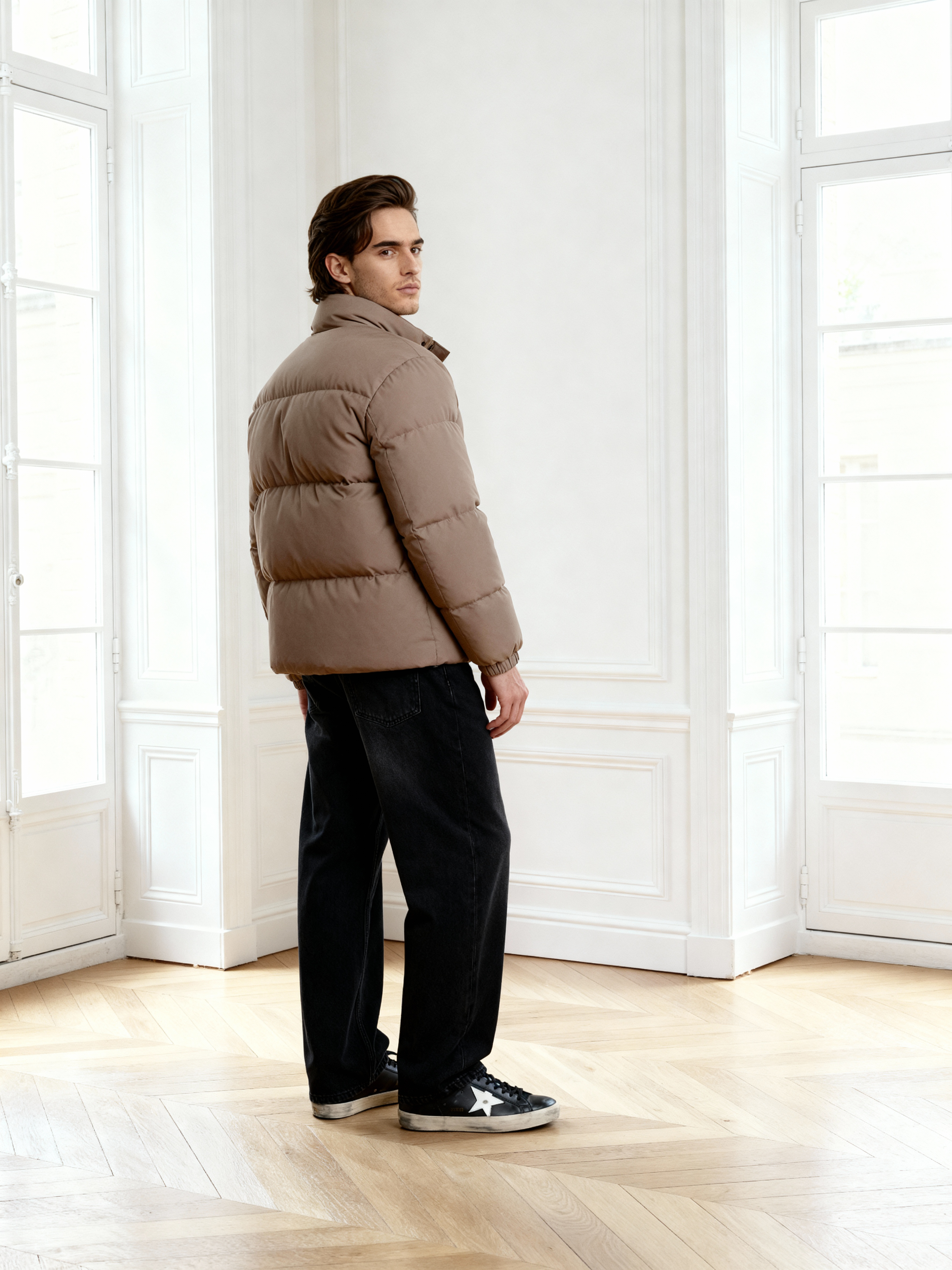 Designed with our signature brand detailing and exceptional craftsmanship, The Midnight Black Marshmallow Jacket is richly textured in fabric and offers a soft yet structured fit, tailored to perfection for a comfortable and modern silhouette. Every element from the precise detailing to the gently weighted feel, reflects a dedication to craft.